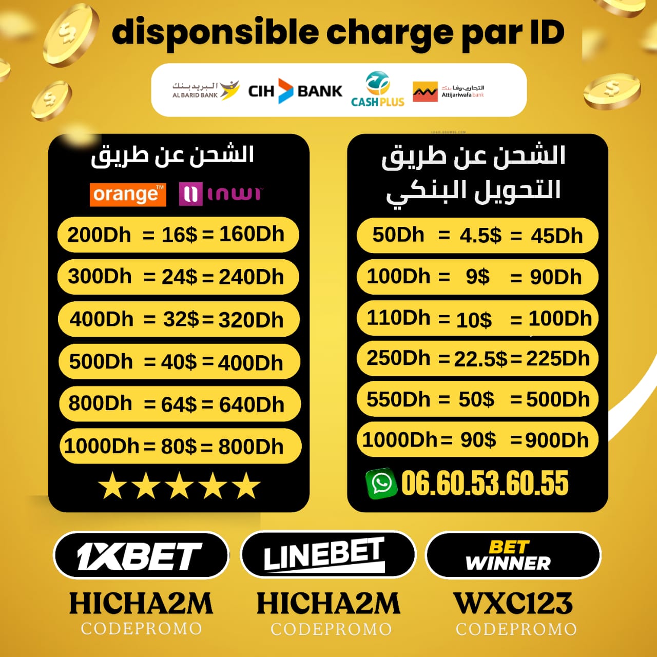 نحن نوفر لكم خدمات الشحن والسحب عن طريق ID بسرعة وضمان والتعامل الطيب والرائع